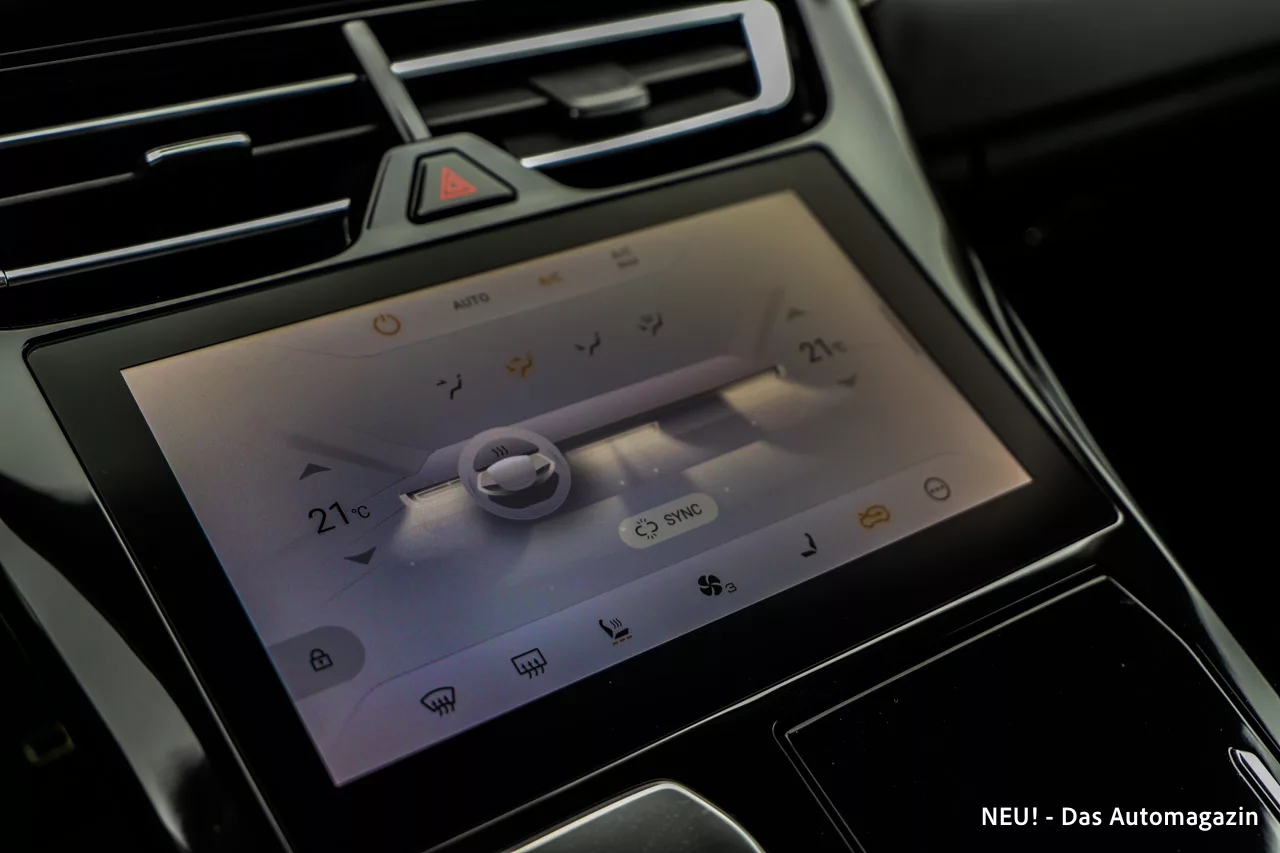 Beim Cockpit setzt GWM auf eine Kombination aus mehreren Displays. Die Darstellung ist hochauflösend, die Animationen laufen sauber. Lediglich das separate Display für die Klimasteuerung ist in seiner Positionierung suboptimal. Der flache Winkel führt dazu, dass direkte Sonneneinstrahlung Reflexionen erzeugt, die das Ablesen erschweren. Davon abgesehen ist die Bedienlogik weitgehend nachvollziehbar, wenngleich manche Untermenüs tief verschachtelt sind.